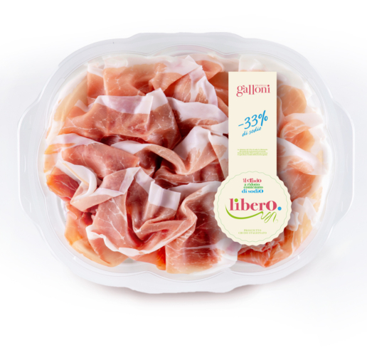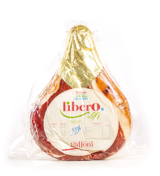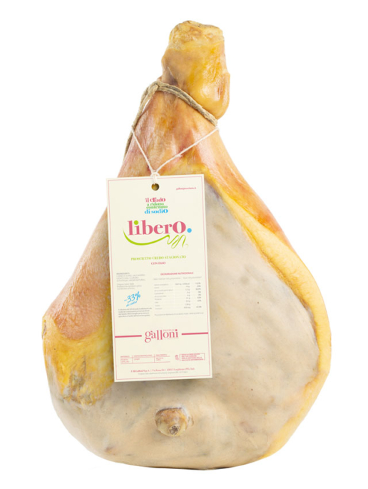 Libero è il Prosciutto Crudo stagionato, a ridotto contenuto di sodio, arricchito con potassio. Ideale per una dieta sana ed equilibrata, per tutti coloro che, salvaguardando la salute, non vogliono rinunciare ai piaceri della tavola . Il prosciutto crudo Libero, oltre ad offrire un’elevata qualità organolettica, si caratterizza per una notevole riduzione nel contenuto di sodio - il 33% in meno rispetto alla media dei crudi presenti sul mercato italiano- e per un importante presenza di potassio: 100 gr di prodotto coprono il 50% del RDA.