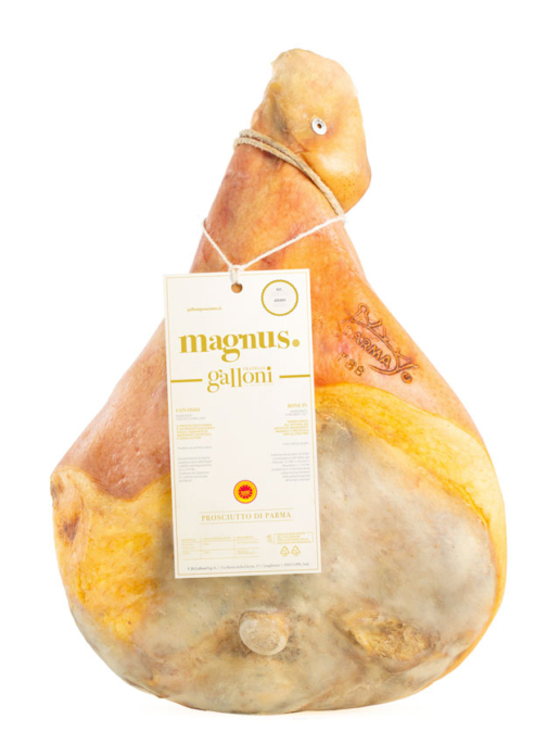 Il Prosciutto Galloni Magnus, prodotto in serie limitata, è disponibile nel formato intero con osso.Ingredienti: carne suina, salePezzatura: superiore a 11 KgStagionatura: almeno 18 mesi