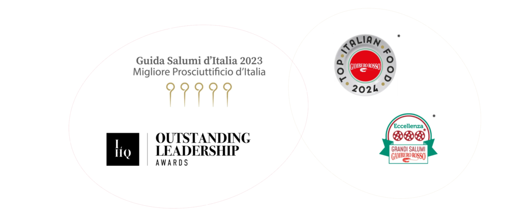 Fratelli Galloni è stato eletto Miglior Prosciuttificio d’Italia 2023 dalla Guida Salumi d’Italia, edita da Maretti Editore. Nella stessa Guida è stato premiato il nostro Prosciutto Barrique con l’ambito riconoscimento 5 spilli. Etichetta Oro 24 Mesi* ha riconfermato il premio Tre Fette di Gambero Rosso conquistandosi il suo posto tra i Top Italian Food. Soddisfazioni arrivano anche da oltreoceano come l’Outstanding Leadership Award consegnato a Mirella Galloni.
